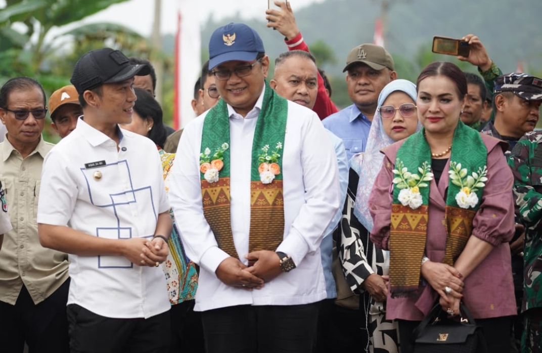 Bupati dan Wakil Bupati Kabupaten Konawe Utara (Konut) Ikbar dan Abuhaera menyambut lansung kedatangan Wakil Menteri (Wamen) Transmigrasi Republik Indonesia (RI) Viva Yoga Mauladi pada kunjungannya di Desa Sambandete, Kecamatan Oheo, Kabupaten Konut, Provinsi Sulawesi Tenggara (Sultra), Minggu (3/8/2025).